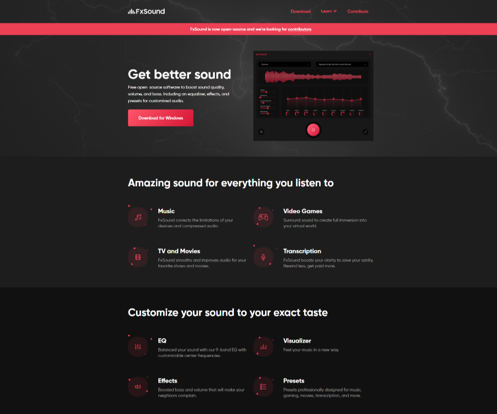 FxSound는 음질, 볼륨, 베이스를 향상시키는 무료 오픈 소스 소프트웨어입니다.